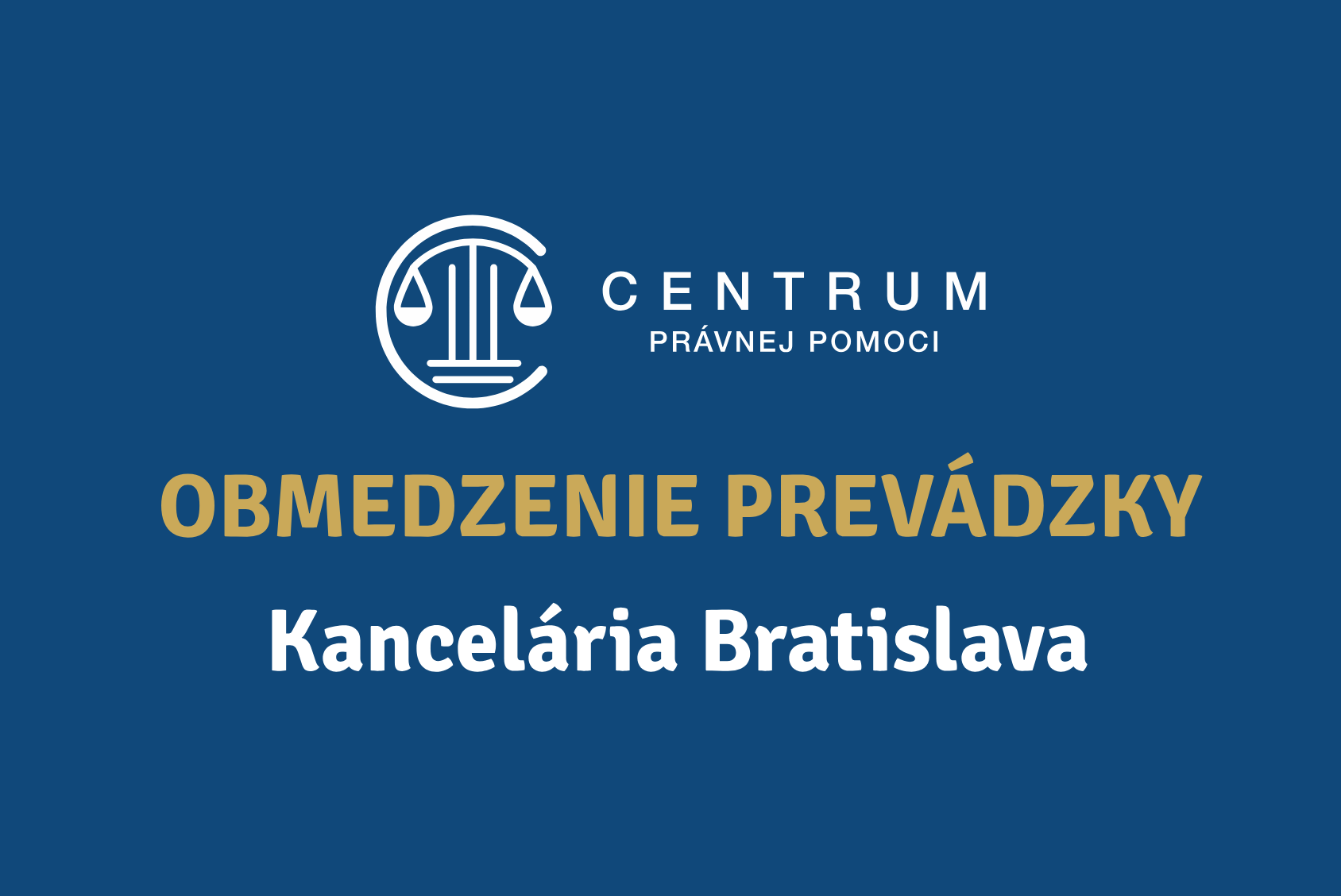 V tomto čase môžete kontaktovať naše Call centrum na: info@centrumpravnejpomoci.sk alebo na čísle 0650 105 100.